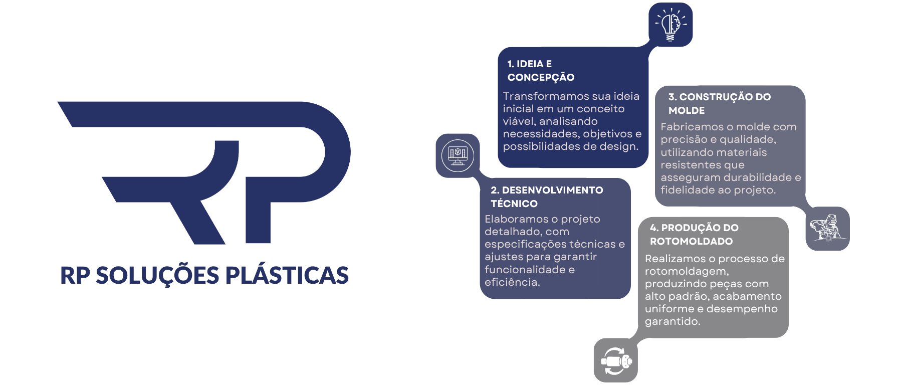 Da concepção do projeto à criação do molde e produção final, a RP Soluções Plásticas acompanha cada etapa para desenvolver peças rotomoldadas sob medida para você.